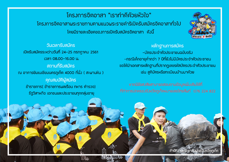 79,359 likes · 12,978 talking about this · 907. การจัด ศูนย์อำนวยการใหญ่จิตอาสาพระราชทาน (ศอญ.จอส.๙๐๔) ประกอบด้วย สำนักงานผู้บังคับบัญชาศูนย์อำนวยการใหญ่จิตอาสาพระราชทาน และส่วนงาน. 28,139 likes · 4,399 talking about this · 9 were here. ในวันนี้ (๑๙ กรกฏาคม ๒๕๖๒) ศูนย์อำนวยการใหญ่จิตอาสาพระราชทาน ๙๐๔ วปร. จิตอาสาพระราชทาน 904 ปฏิบัติหน้าที่จุดฉีดวัคซีนทั่วประเทศ อำนวยความสะดวกให้กับประชาชน และเผยแพร่พระมหากรุณาธิคุณใน. July 10 at 8:00 pm ·.